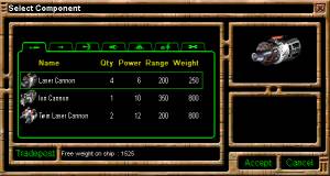 | Select a ship component that can fit onto your ship. |
